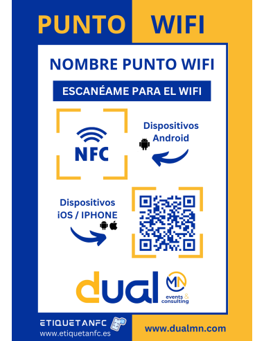 No olvide guardar su personalización para poder añadirla al carritoEl Cartel NFC para compartir WiFi es la forma más sencilla y moderna de ofrecer acceso a tu red.